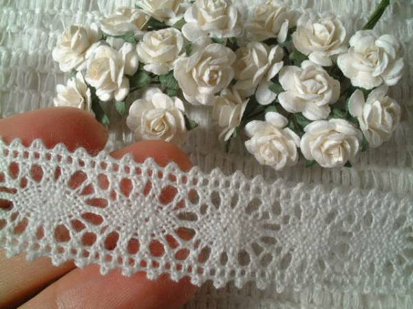 ご覧頂きありがとうございます。 とってもかわいらしい白コットンのレース レースの巾は約20mmになります。 お取り置きも承りますので、落札後に1度必ずご連絡くださいませ。 オンラインショップとの同梱も可能です。 | ||