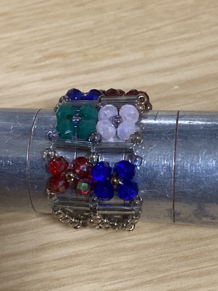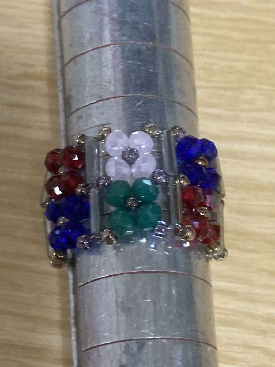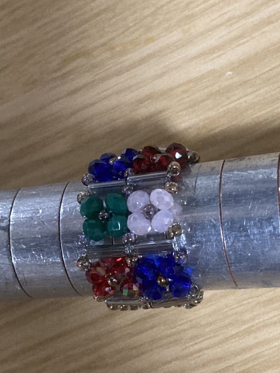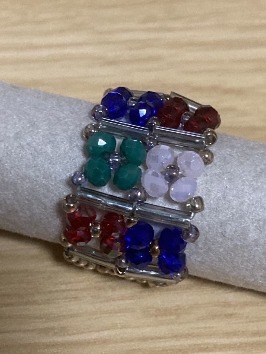 天然石 ビーズリング(ハンドメイド)(猫)スワロフスキー