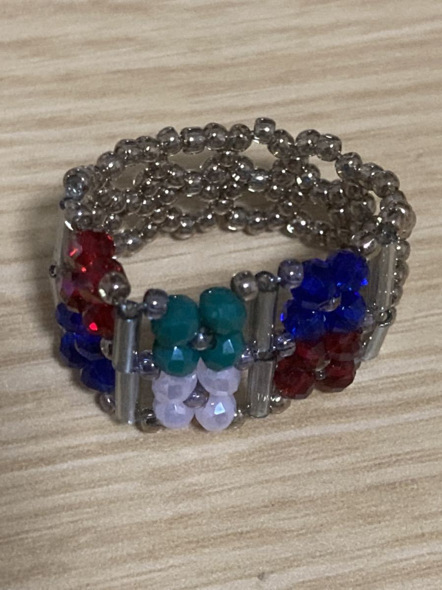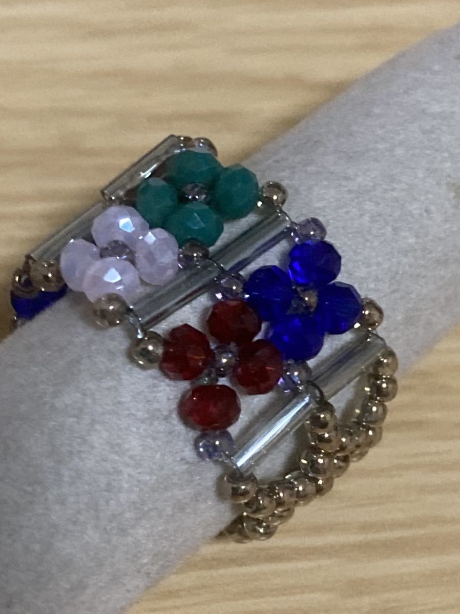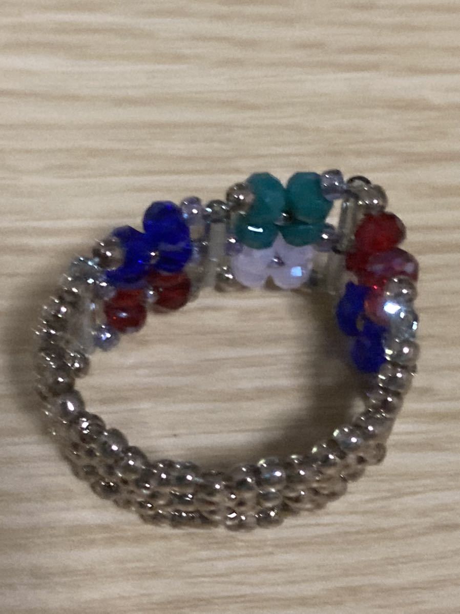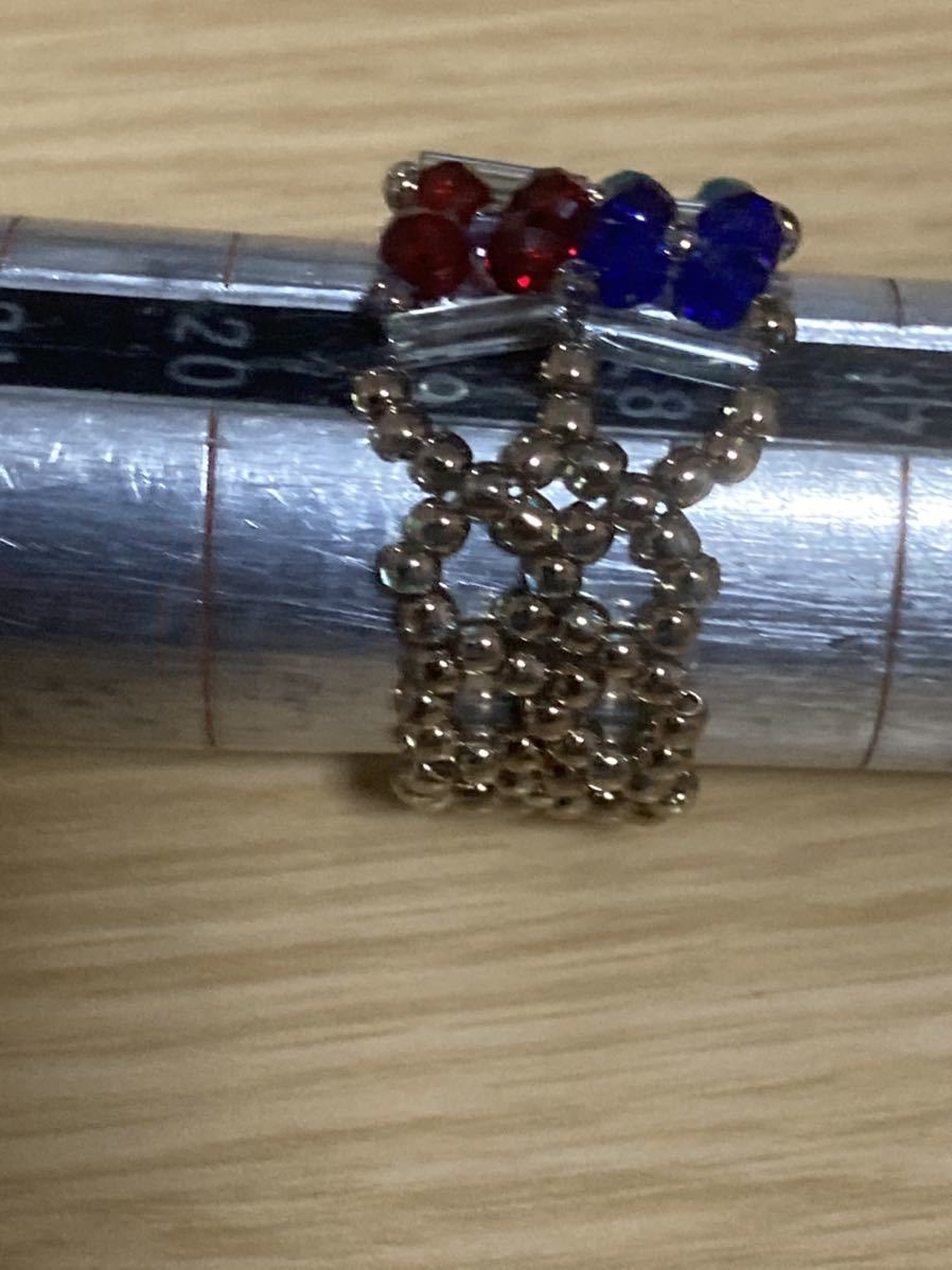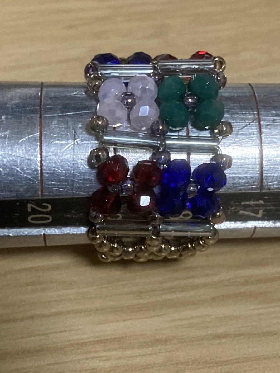 天然石 ビーズリング(ハンドメイド)(猫)スワロフスキー
