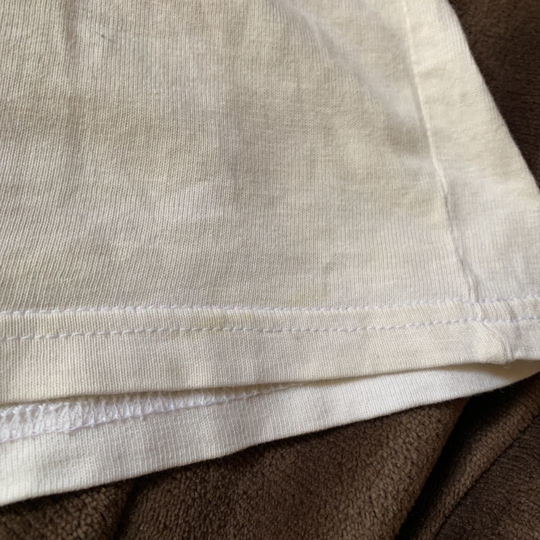 よく見るとすそあたりに汚れ、首周りよれがあります。