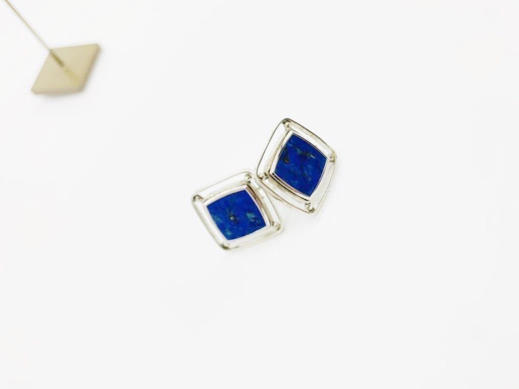 美しいラピスラズリが印象的なシルバーイヤリングのご紹介です。