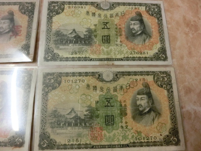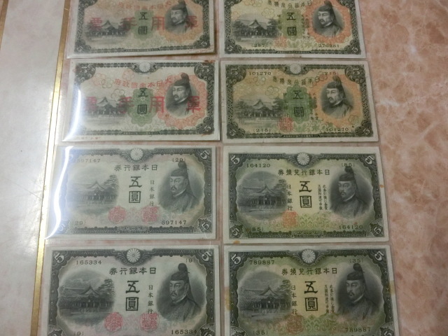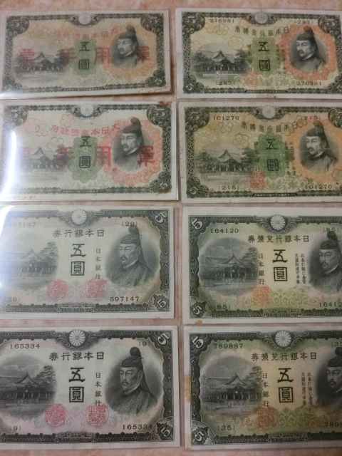 1次5円・2次5円・3次5円・丙号5円の美品~を4種8枚セットです。