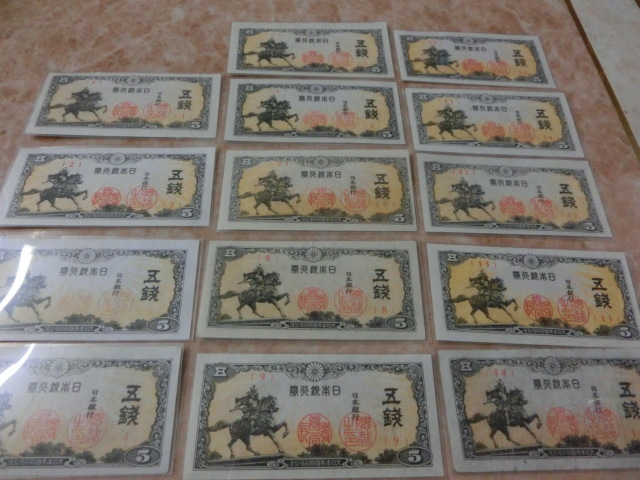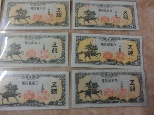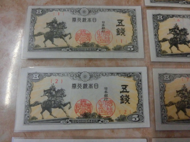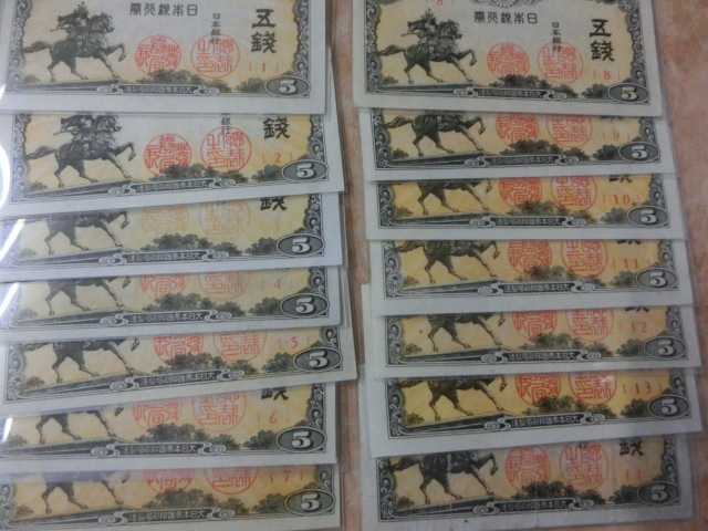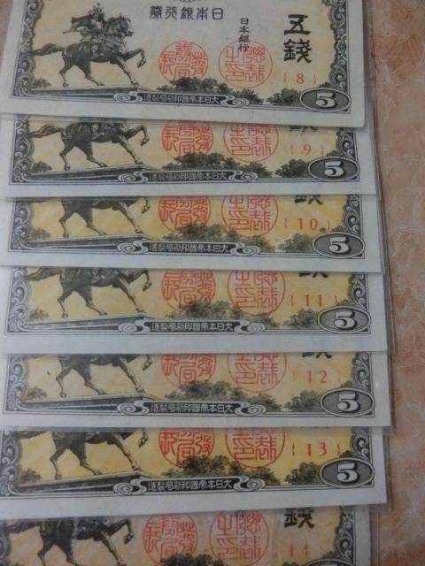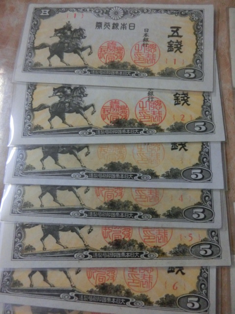 ★ 日本銀行券5銭 楠公5銭 組番号1~14番 未使用~極美品 14枚 ★ No.501