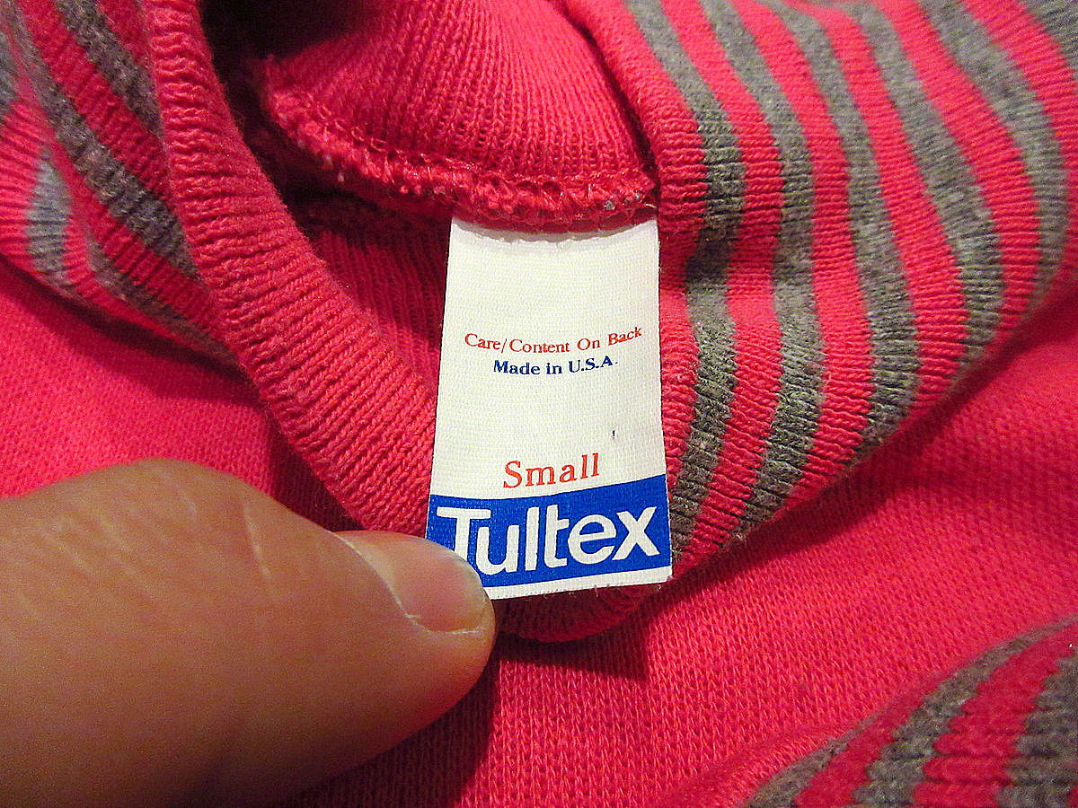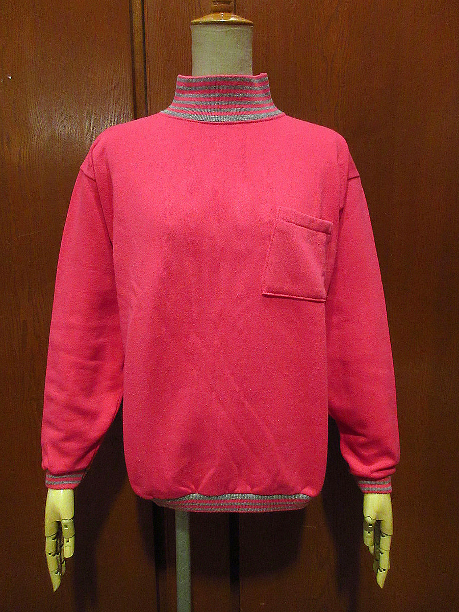 | ◆◇1980’s Tultex 裏起毛ポケット付きリブボーダーハイネックスウェット ピンク size S◇◆ |