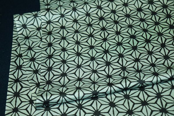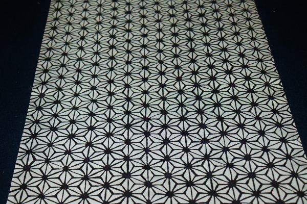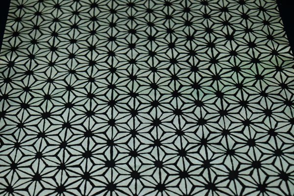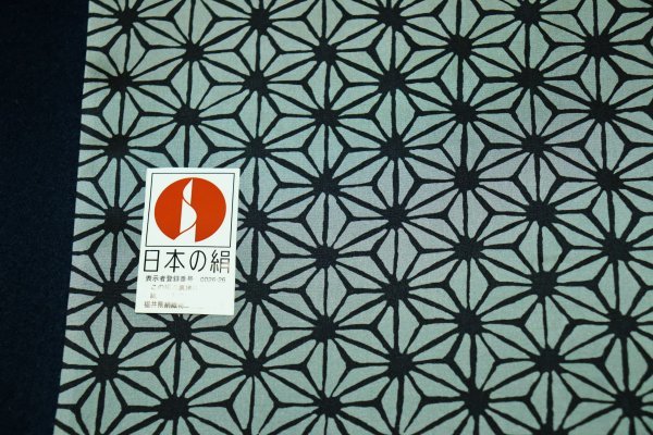 | 【京わぎれ】正絹 羽二重生地 コート裏 (羽裏・肩裏) 国産福井県産羽二重生地 麻の葉柄 黒×薄グレー 約5.8m アウトレット品① | ||||