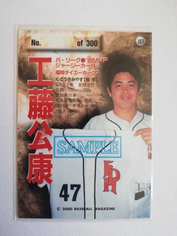 工藤公康 00 BBM ジャージーカード サンプル ダイエーホークス