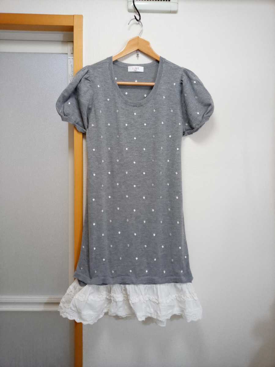 グレー地にシルバーのドット刺繍のステキなニットワンピースです。
