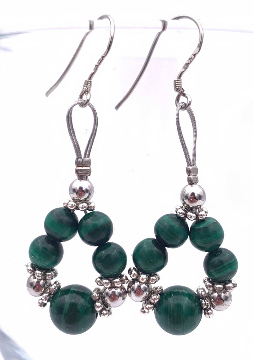 ★天然石マラカイトAAのピアス