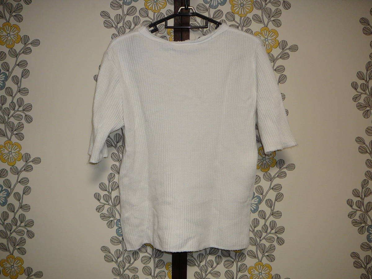 初めに自己紹介欄をお読みください。受取連絡されない方、オークション代行業者、落札後、3日以内に連絡できない方、3日以内に入金できない方、日本語の通じない方は入札しないで下さい。マカフィー カットソー 厚手生地 シロ サイズ1 コットン100 日本製 (株)トゥモローランド 着丈58 身幅52 生地に伸縮性多少あります。素人採寸ですので誤差はご理解下さい。コットン100 丈夫な厚手生地のシャツです。気楽に着れます。首回り、袖口、裾のほつれはデザインで、最初からこのような感じでした。着用回数少ないので、主観ですがきれいと思います。大変高価でした。写真にて判断してください、過剰な期待の上での入札はご遠慮下さい。値段を釣り上げた上でのクレームはやめてください。素人検品ですので細かい箇所のクレームはご遠慮下さい。新規、評価の悪い方や低い方はこちらで入札を落札者都合取り消しさせていただきますので、ご了承ください。NC・NRでお願いします。いかなる理由でも返品は受け付けません。主観での出品ですので神経質な方は入札ご遠慮下さい。業者出品ではございませんので、細かいモデル名にこだわる方、後々ややこしいことを言われる方はトラブルの元ですので、絶対に入札しないで下さい。発送は定形外かクロネコ着払い、入ればレターパックのみです。迅速に対応していただける方のみの入札をお願いします。他にもいろいろ出品しています。良ければご覧下さい