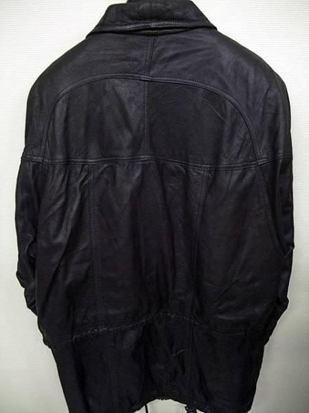 FILES ネイビーレザーコートです。レザーの種類の記載は有りませんが、しなやかな革で着心地良いです。最下部は絞れるようになっています。◆サイズはSで着丈約78cm・袖丈(脇下から)約50cm・身幅約60cmです。◆USEDです。革のふちに擦れ程度有りますが他綺麗な状態です。◆