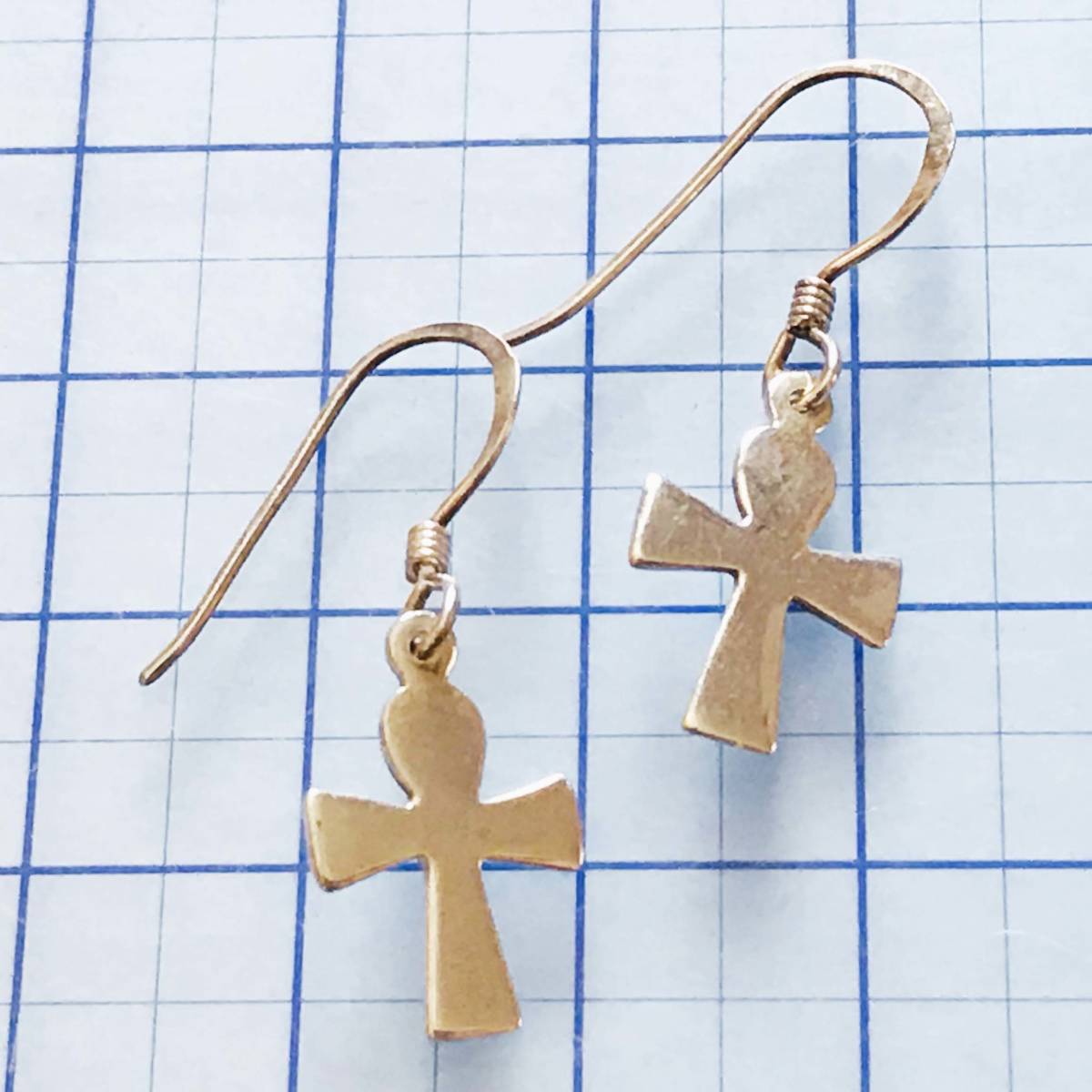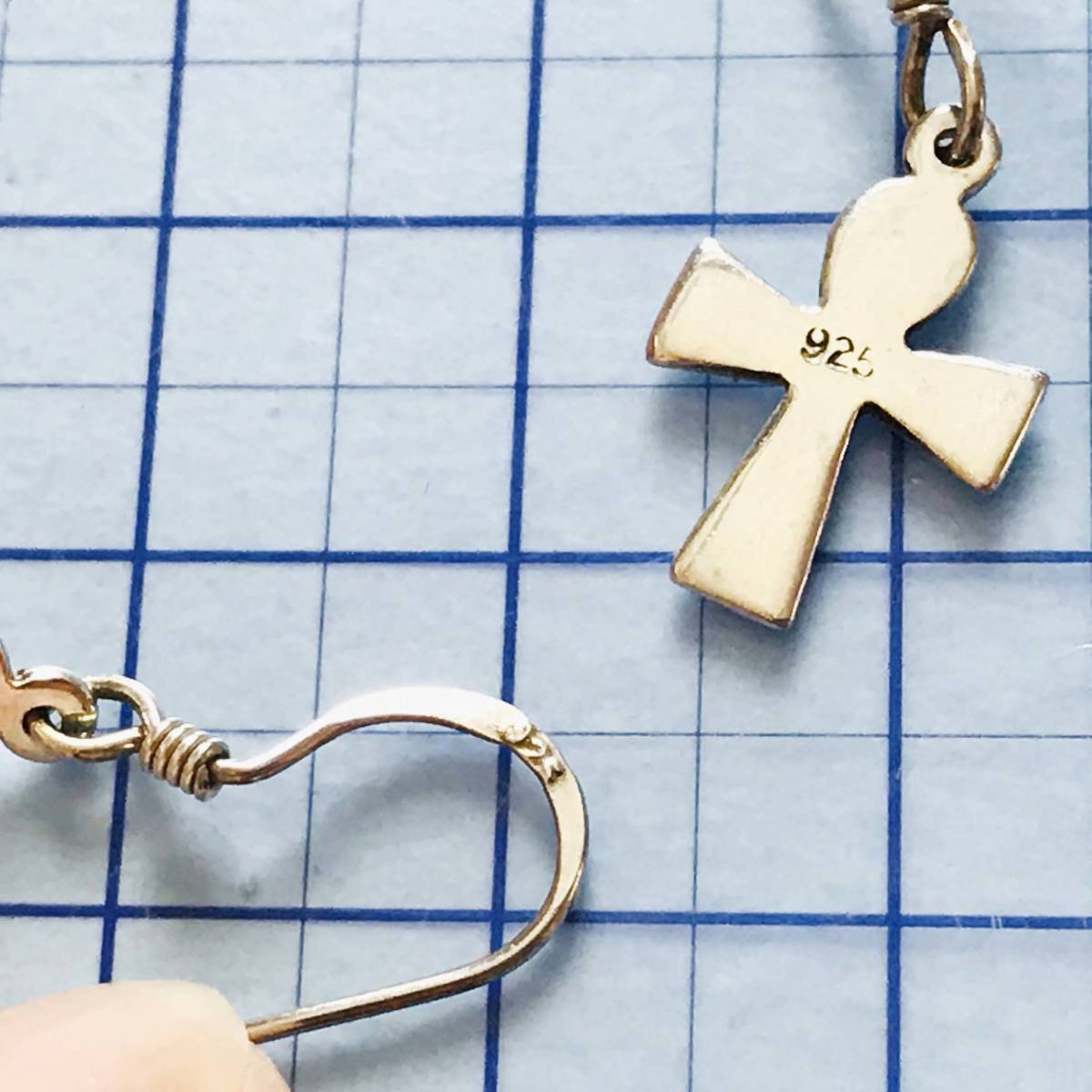 美品 925刻印 シルバー銀製 十字クロス ピアス No.4826