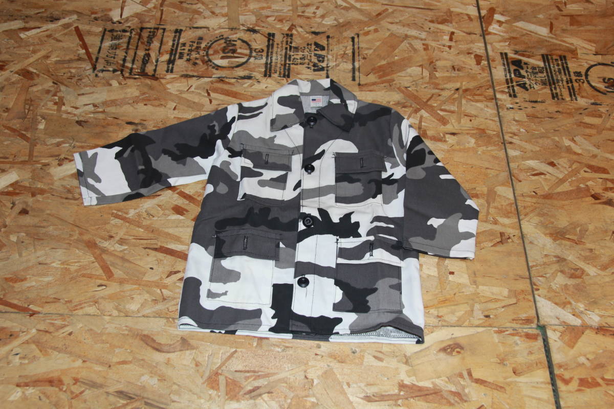 こども服 パンツ KIDS ミリタリージャケット モノトーンカモ 4 即決 送料無料 新品未使用 ヴィンテージ アウトドアなどにどうぞ!