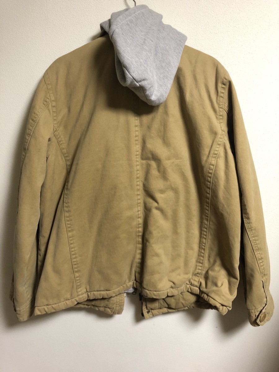 | ご覧いただきありがとうございます。 Cali Holi (カリホリ) のアウターです。 ●CALI HOLI(カリホリ) ・カリホリとは“カリフォルニア・ホリディ”の略で、カリフォルニアで過ごすセレブリティなバカンススタイルのデザインが特徴的なブランドです。 ・アメリカンブランドにも関わらず、日本人の体型にも違和感なくフィットするデザインも魅力的です。 ・アメカジ好きな方に是非おすすめしたいブランドの一つです。 【サイズ】 ・XLサイズ ・着丈:約 69cm ・身幅:約 60cm ・肩幅:約 48cm ・袖丈:約 66cm ※採寸は平置きの状態で計測しています。 ※測り方に個人差がありますので、多少の誤差はご容赦下さい。 ※サイズの数値はあくまでもサイズの目安としてご利用下さい。 【 商品状態 】 ・古着ですが傷みも少なく美品です。まだまだ着用していただけます。 【 送料について 】 ・『100サイズ』の料金にてお送りいたします。 | |||