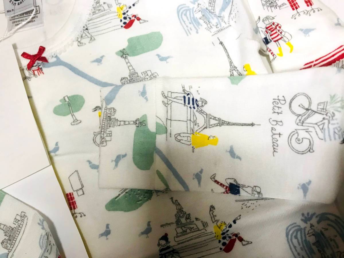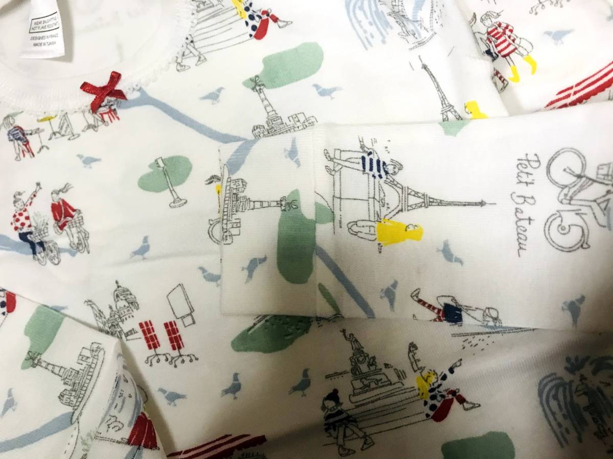 エッフェル塔やセーヌ川、カフェなどパリの風景が可愛いイラストでプリントされています。