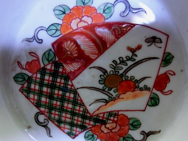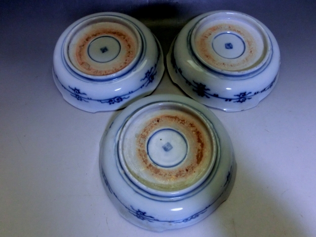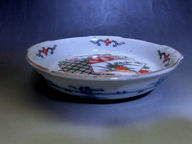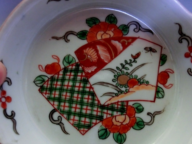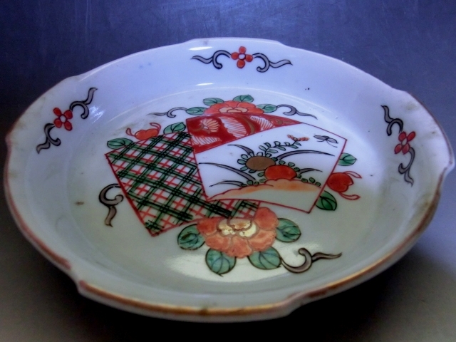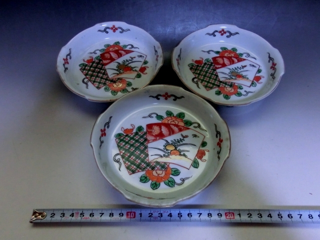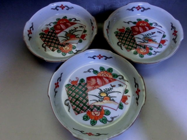 皿■変形伊万里焼 明治期 3枚 赤絵 窓花鳥紋変型鉢 膾鉢 古伊万里 古美術 時代物 骨董品■