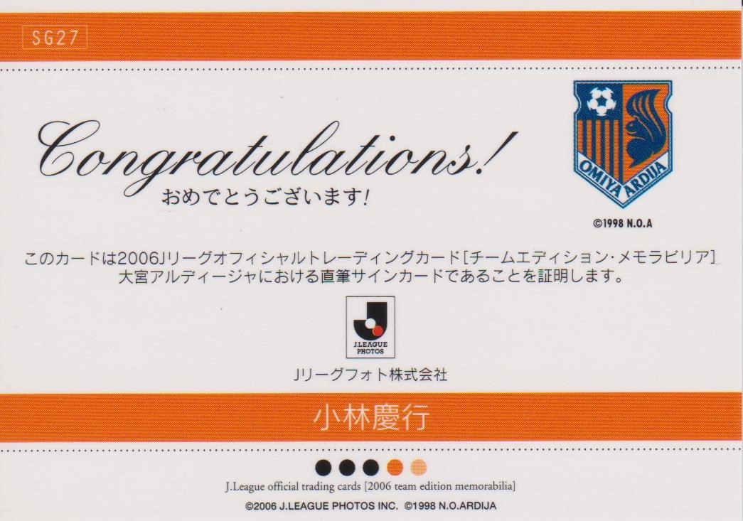 Jカード 2006TE 小林慶行 大宮アルディージャ 直筆サインカード ☆東京V 柏 新潟