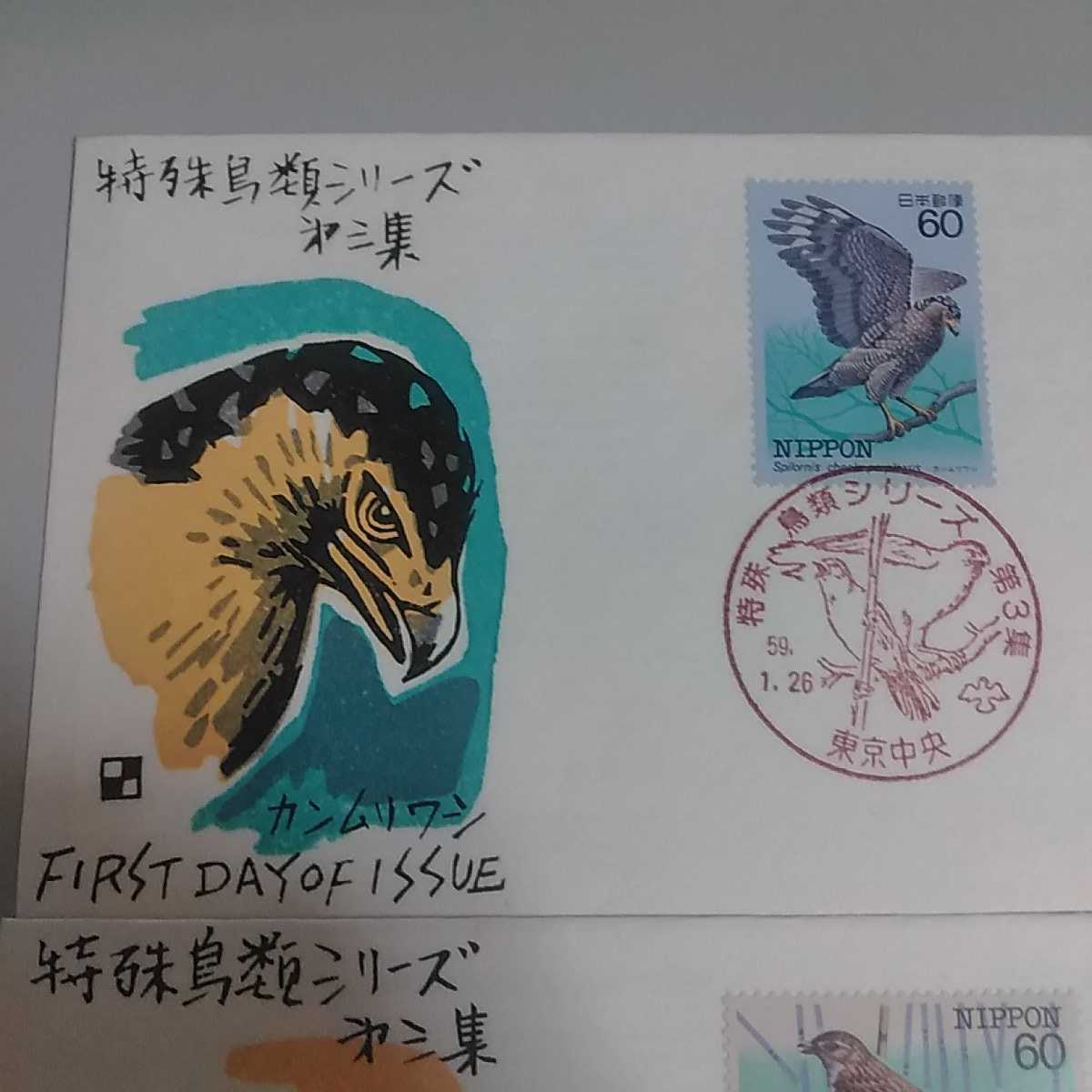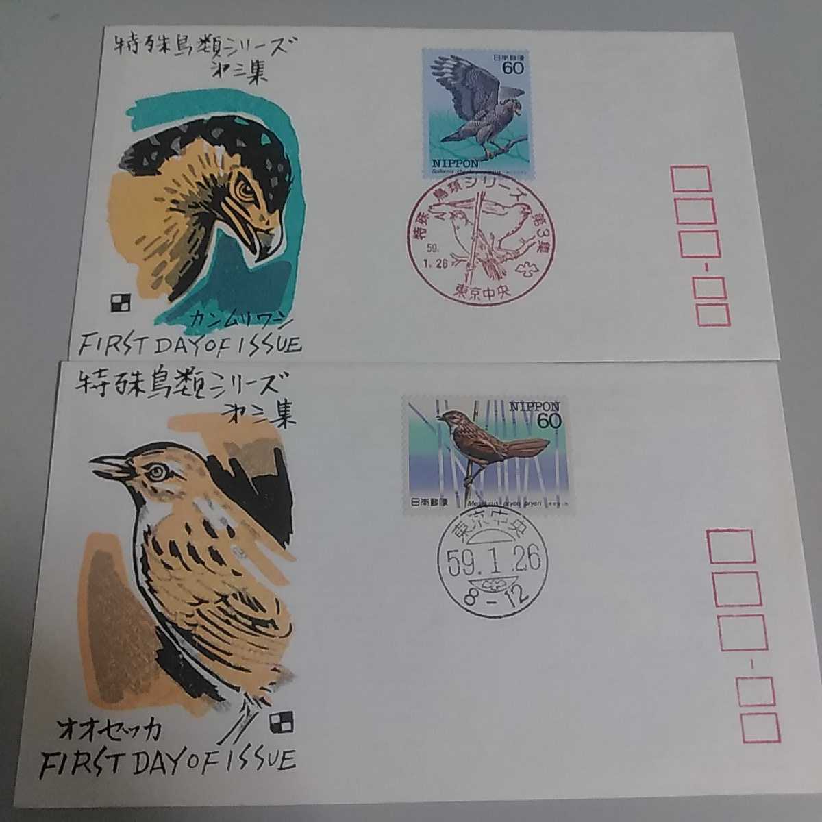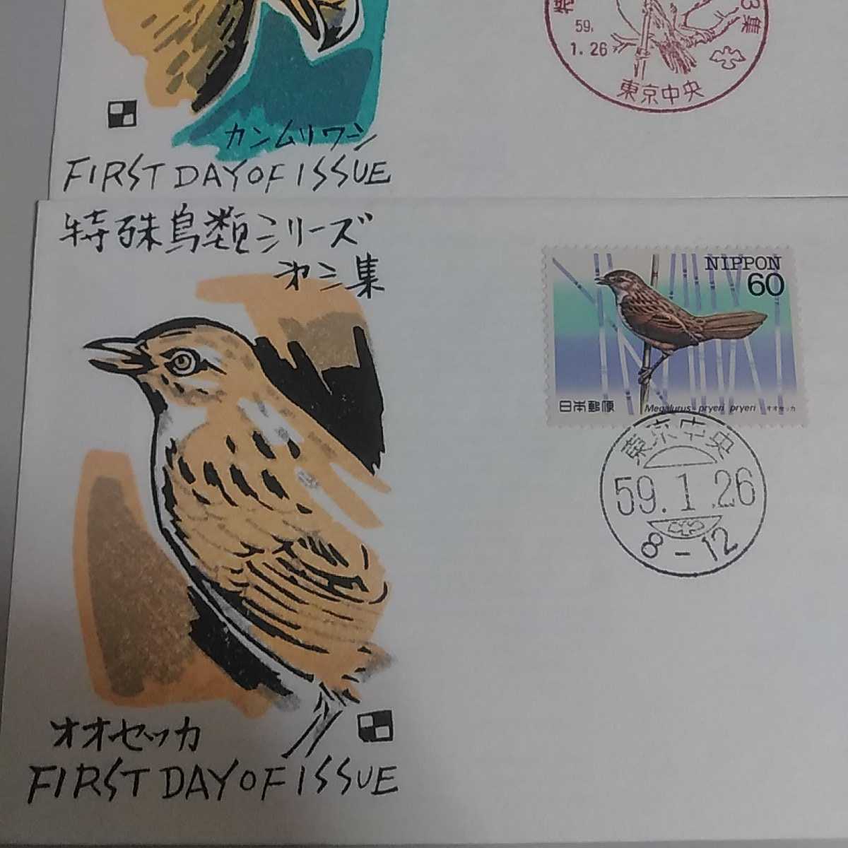 A 初日カバー First day Cover東京中央郵便局 昭和59年 特殊鳥類シリーズ 60円切手二枚組 オオセッカ&カンムリワシ