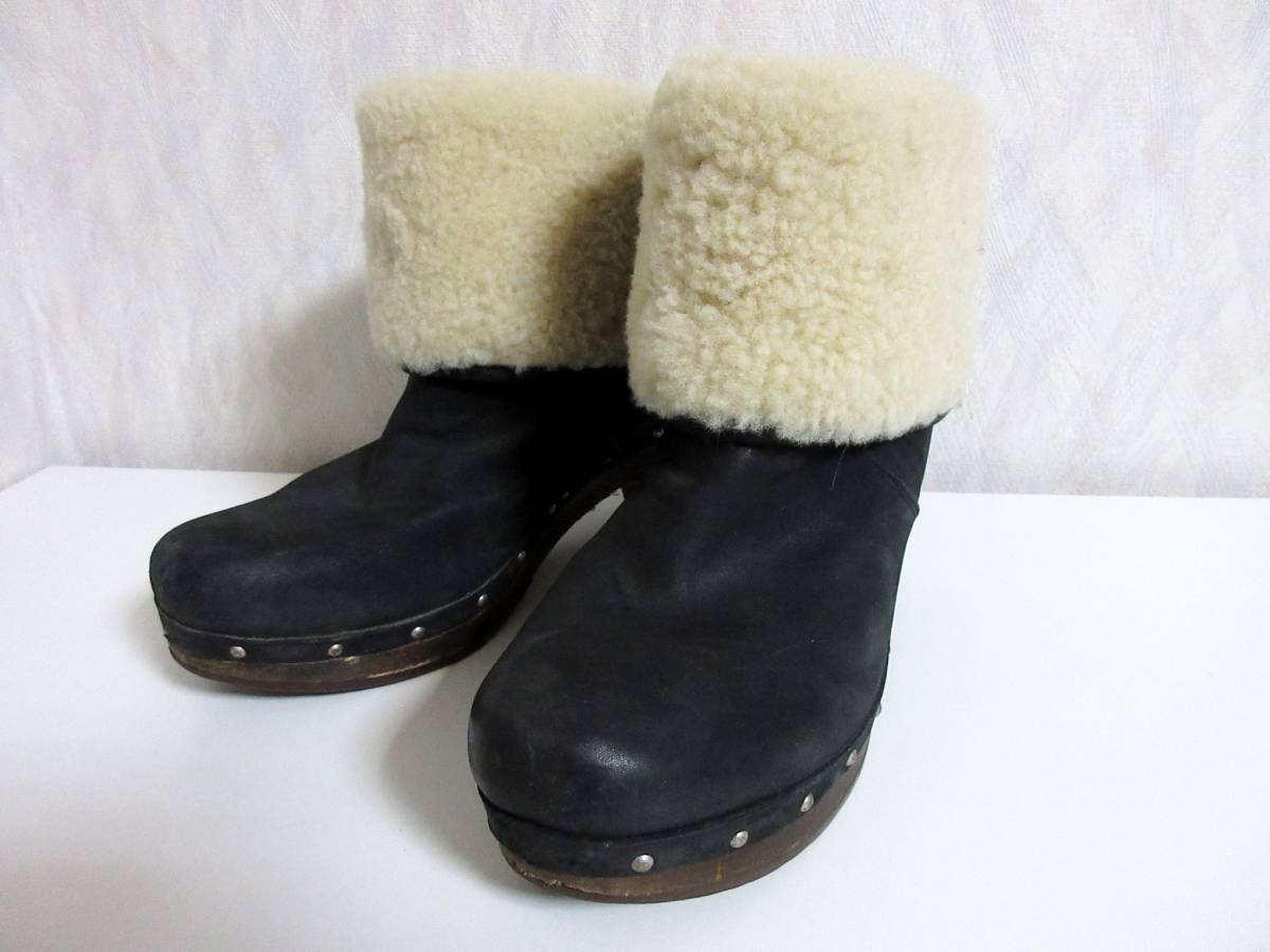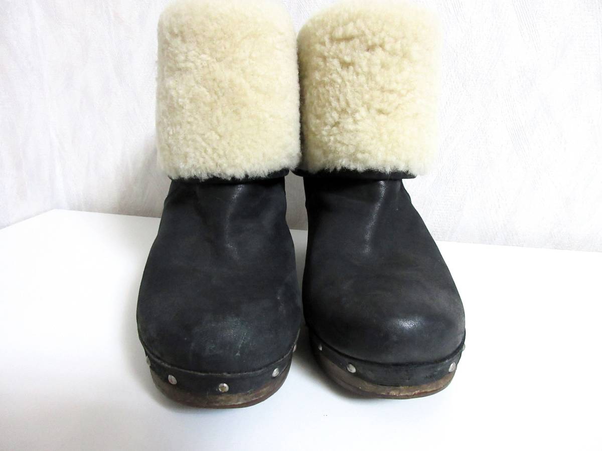 アグ UGG リネア レザー ショートブーツ 黒 ブラック 8 北2015