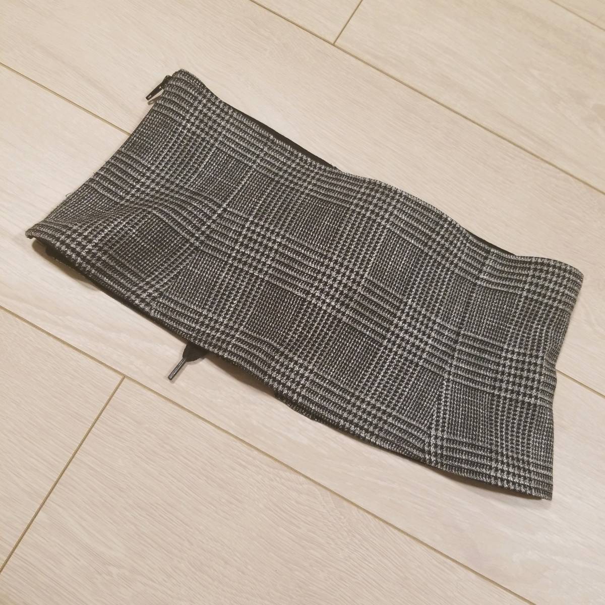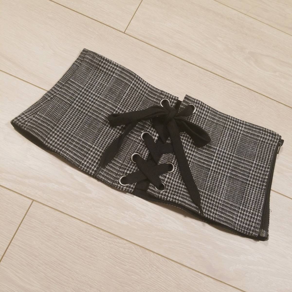 N500 GU ジーユー コルセット ベルト グレー系 グレンチェック 柄 編み上げ