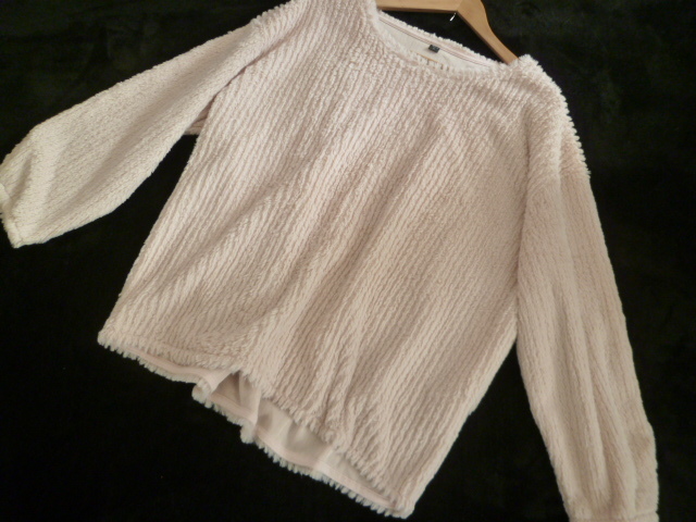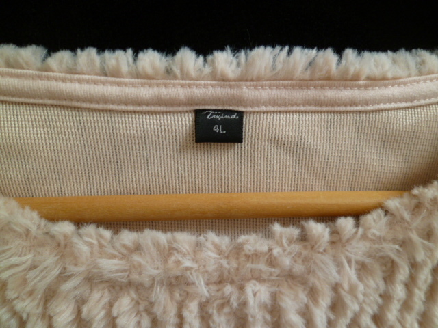 T-mind△淡ピンク起毛フェイクファーゆったりトップス4L/大きいサイズビックサイズ長袖カットソープルオーバーライトピンク△① 212