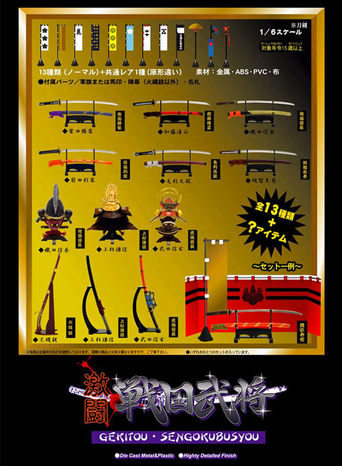 ■付属品:刀剣用ディスプレイスタンド、軍旗または馬印、陣幕、名札、説明書カード