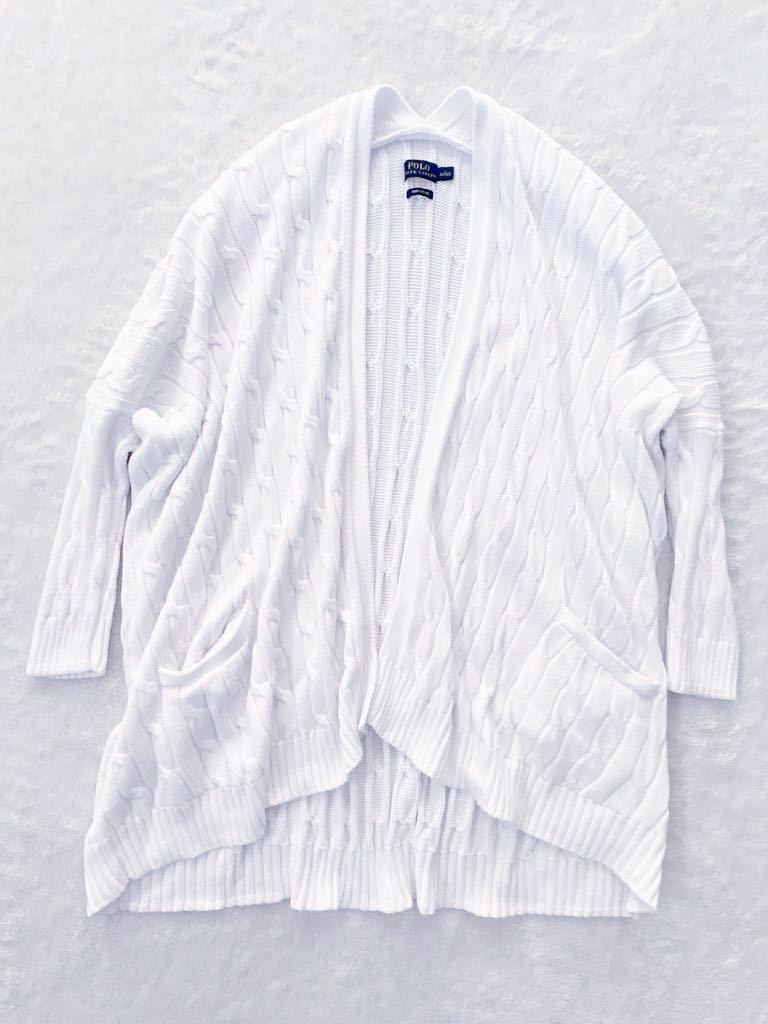 美品 POLO RALPH LAUREN sizeS PIMA COTTON コットンニット ロングカーディガン アラン編み ホワイト 白 ラルフローレン ポロ