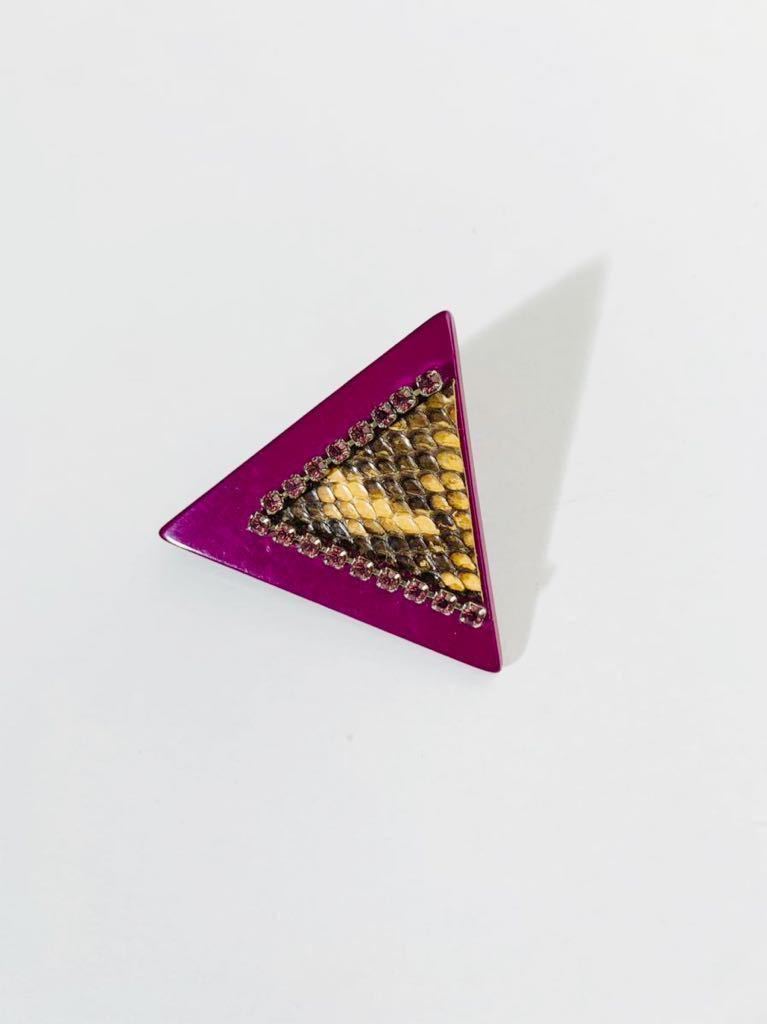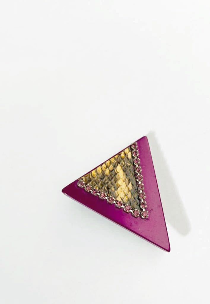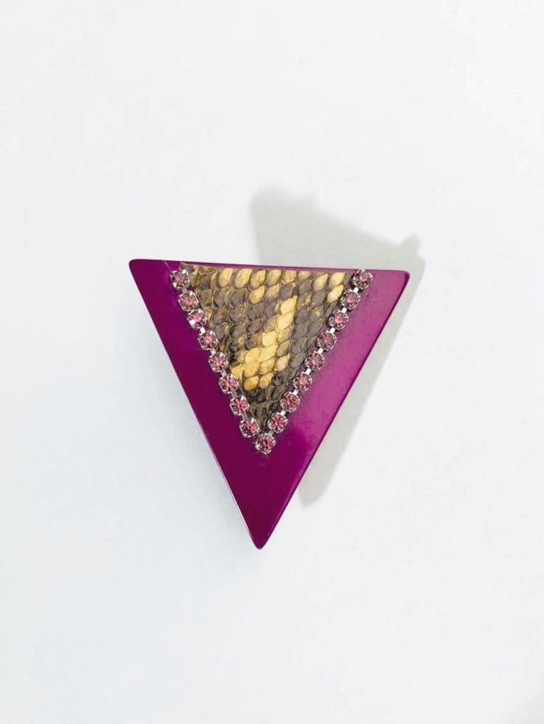 【USED】超レア ヴィンテージ パイソン トライアングル ブローチ デッドストック ラインストーン パープル 紫 ヘビ皮
