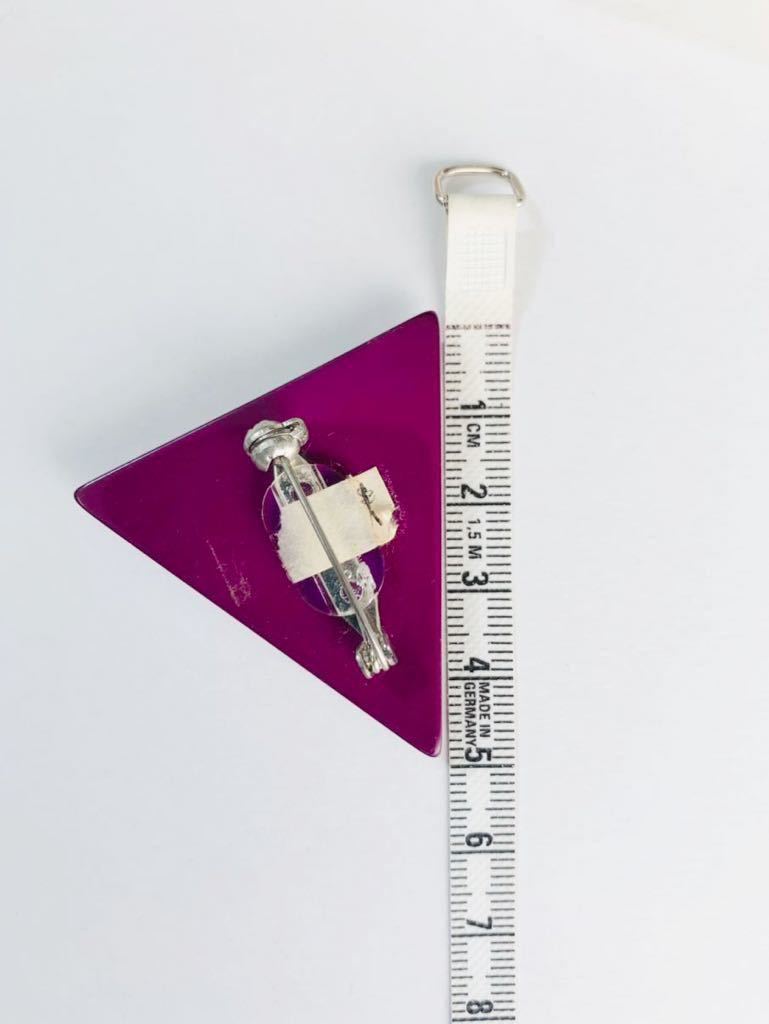 赤紫のトライアングルが斬新で印象的なブローチのご紹介です。