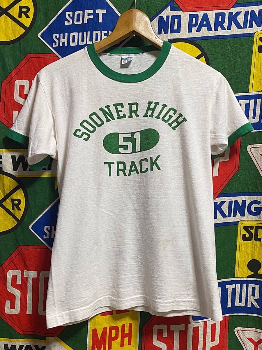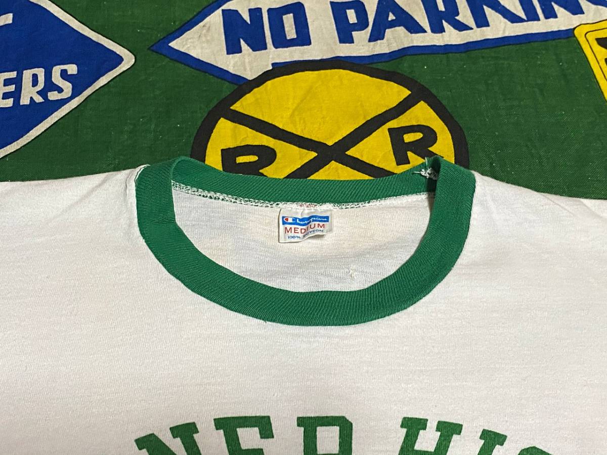 ★バランスの良い3列染み込みプリント★Made in USA製アメリカ製ChampionチャンピオンビンテージカレッジTシャツ70s70年代バータグトリムM