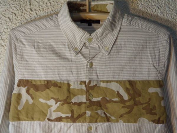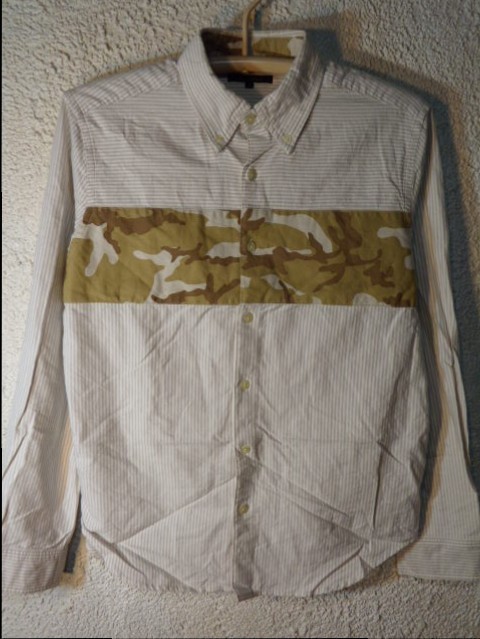 n1428 チャオパニック Ciaopanic 長袖 ストライプ ボーダー 迷彩 カモフラ 切替 デザイン シャツ 人気 送料格安