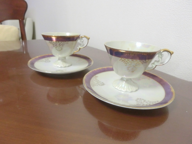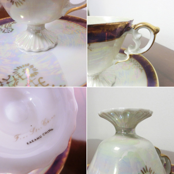 KAKAMU CHINA 背高カップ&ソーサー2客 玉虫に輝く