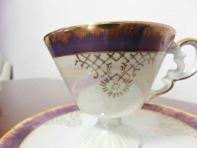 KAKAMU CHINA 背高カップ&ソーサー2客 玉虫に輝く