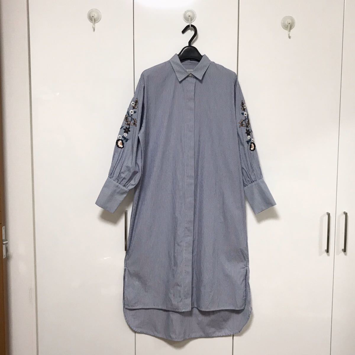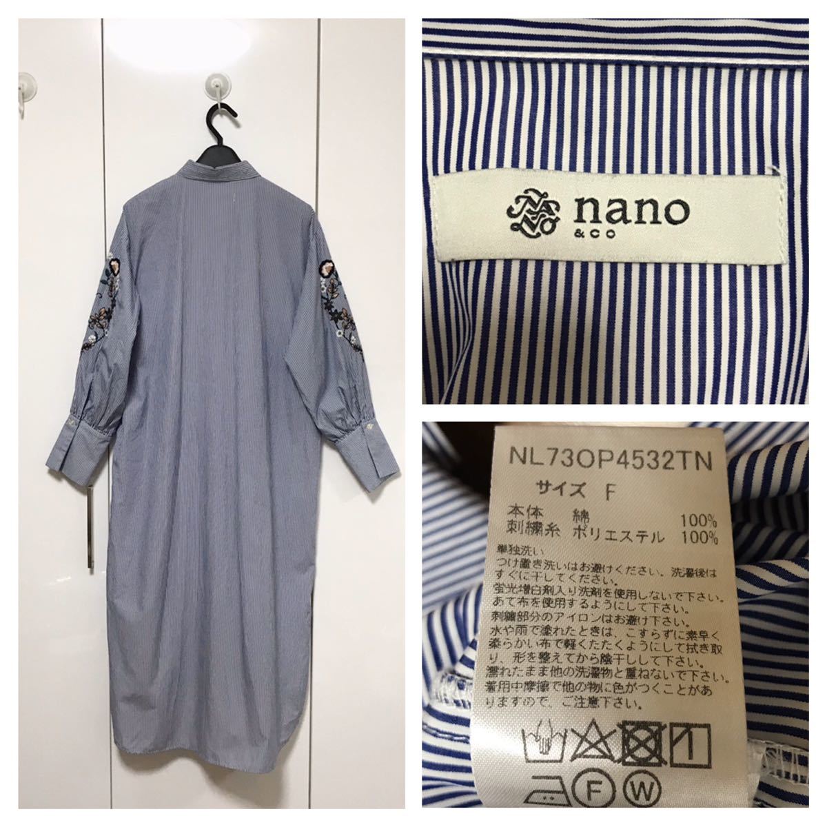 ナノユニバースの袖刺繍シャツワンピースです。特筆する汚れやダメージはありません。