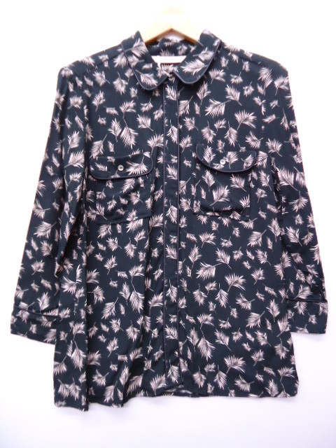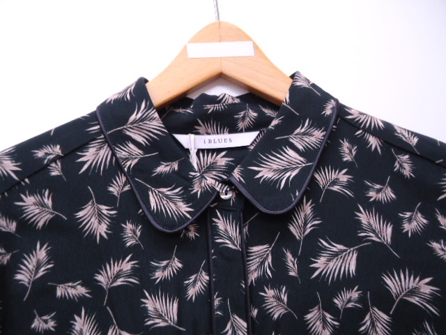 【KCM】asy-102-42★新品★【iBLUES/イブルース】レディース 葉柄 長袖ブラウス ブラック系 サイズ42