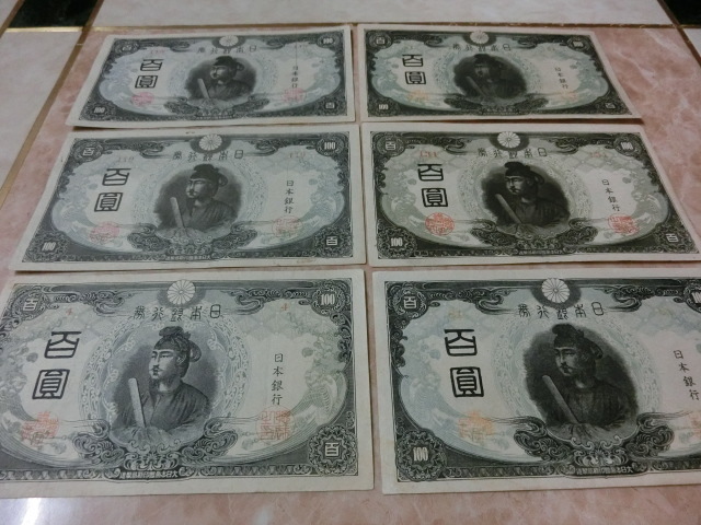 ★ 改正不換紙幣100円 3次100円 6枚セット 上美品~美品 ★ No.222