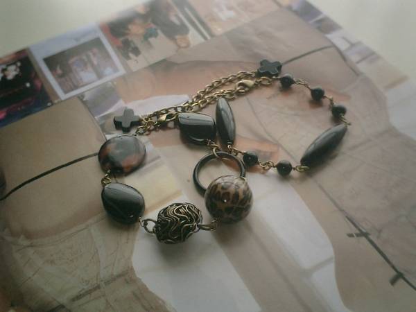巴里・ロゼッタシリーズです♪ロマンチックを見つけて!シックなオニキスと豹柄の異素材のキュートなブレスレット2本セットです♪さりげなくパンクしています♪色々な組み合わせで楽しんでいただけます♪オニキスのブレスレットは6ミリの丸玉と35×8ミリ位のナツメ型です♪長さは全長23センチ位で調節自由です♪20×15ミリのフラットオーバル、22ミリ位のリングのオニキスは15ミリの丸玉、20ミリのコインの豹柄のシェルビーズやウッドビーズやデザインメタルビーズを合わせてシックでアンティークな表情です♪長さは全長24センチ位で調節自由です♪♪それぞれ単品やネックレスも出品しています♪シンプルで飽きのこないいつまでも着けられるデザインを考えて作りました!ハンドメイドをご理解頂いてノークレーム、ノーリターンでお願いします