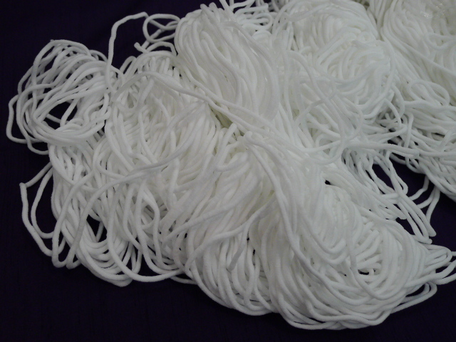 ②マスク紐・マスク用丸ゴム(ポリウレタン×ナイロン)約 4m(大人用マスクで60㎝が目安なので6枚 取れます)