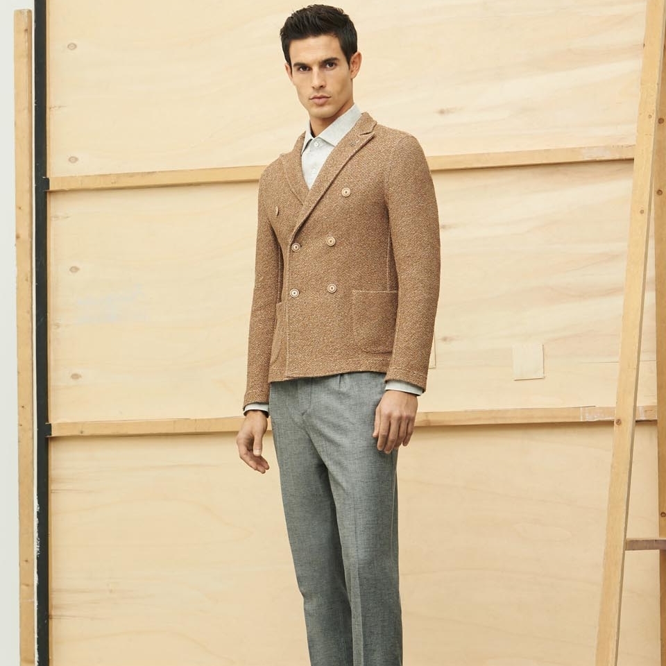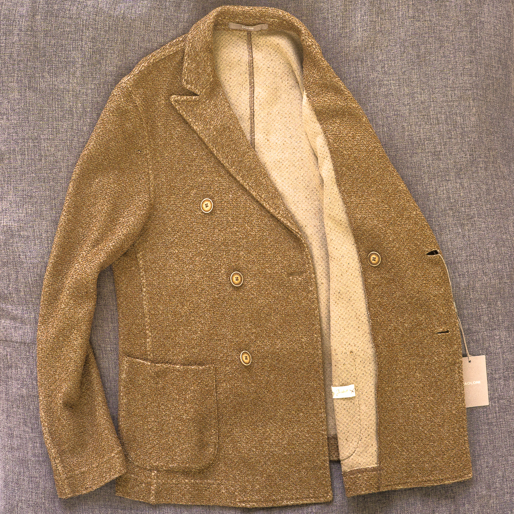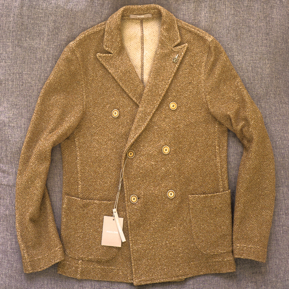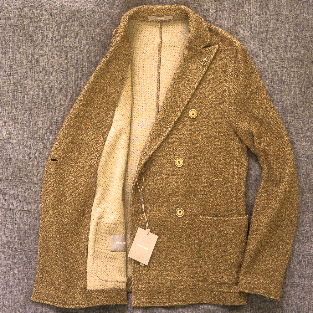 イタリア老舗 PAOLONI リネン コットン ニット ダブルジャケット 48 46の方にも アンコン サルトリア パオローニ ジャケット 新品 送料無料