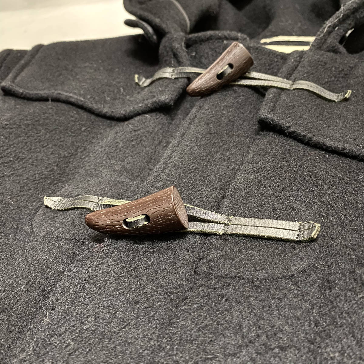 90年代グローバーオールダッフルコートです。 白タグの付くイングランド製のオールド物。 レザーに水牛トグルを使用した高級感のあるフロントデザインです。 濃紺ではなくブラックなのも玉数少なく希少だと思います。 洗濯済みになります。お探しの方におすすめです。 | |||