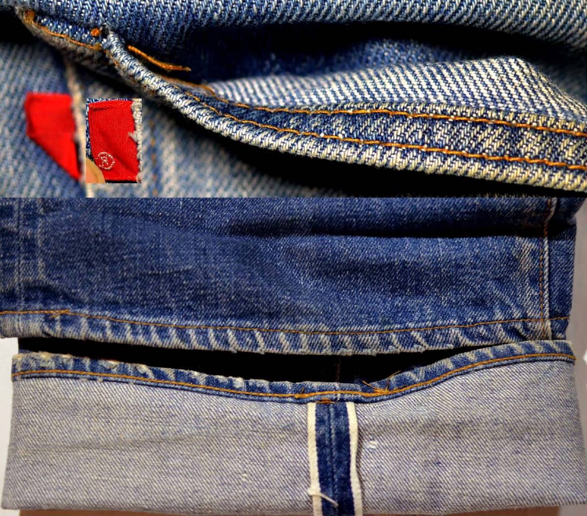70's501の66前期です。復刻、レプリカではありません。『ディテール紹介』バックポケット裏シングルステッチ、フロントトップボタン裏の刻印6、裾オリジナルチェーンステッチ。Rタブです。 『状態』リペア=右モモ(小穴を直した全く目立たないもの一つ)。その他=スレ、キズなどUSED感があります。生地はしっかりしています。『色落ち、特徴など』 ビッグサイズの501 66前期です。全体に綺麗な縦落ちが見られ、ざらざらした前期ならではの良い生地です。大き目サイズをお探しの方は是非いかがでしょうか。 66らしい非常に良い雰囲気だと思います。