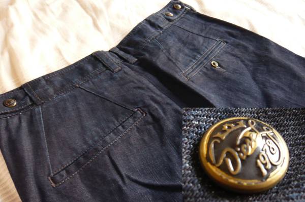 ディーゼルらしい奇麗なシルエットでかっこいいボタンをウエストに配置した高級感のあるジーンズです。