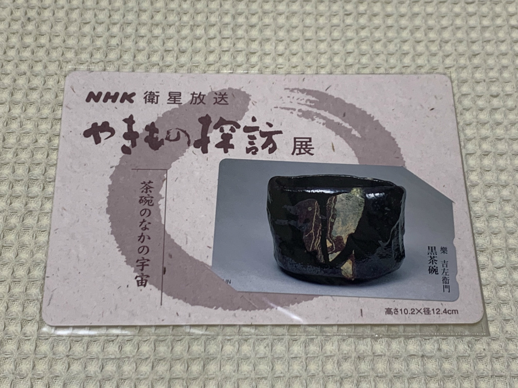 20年以上前に NHK衛星放送 やきもの探訪展 にて販売されていた『「黒茶碗(楽 吉左衛門)」テレホンカード(台紙付き)』の未使用新品です。