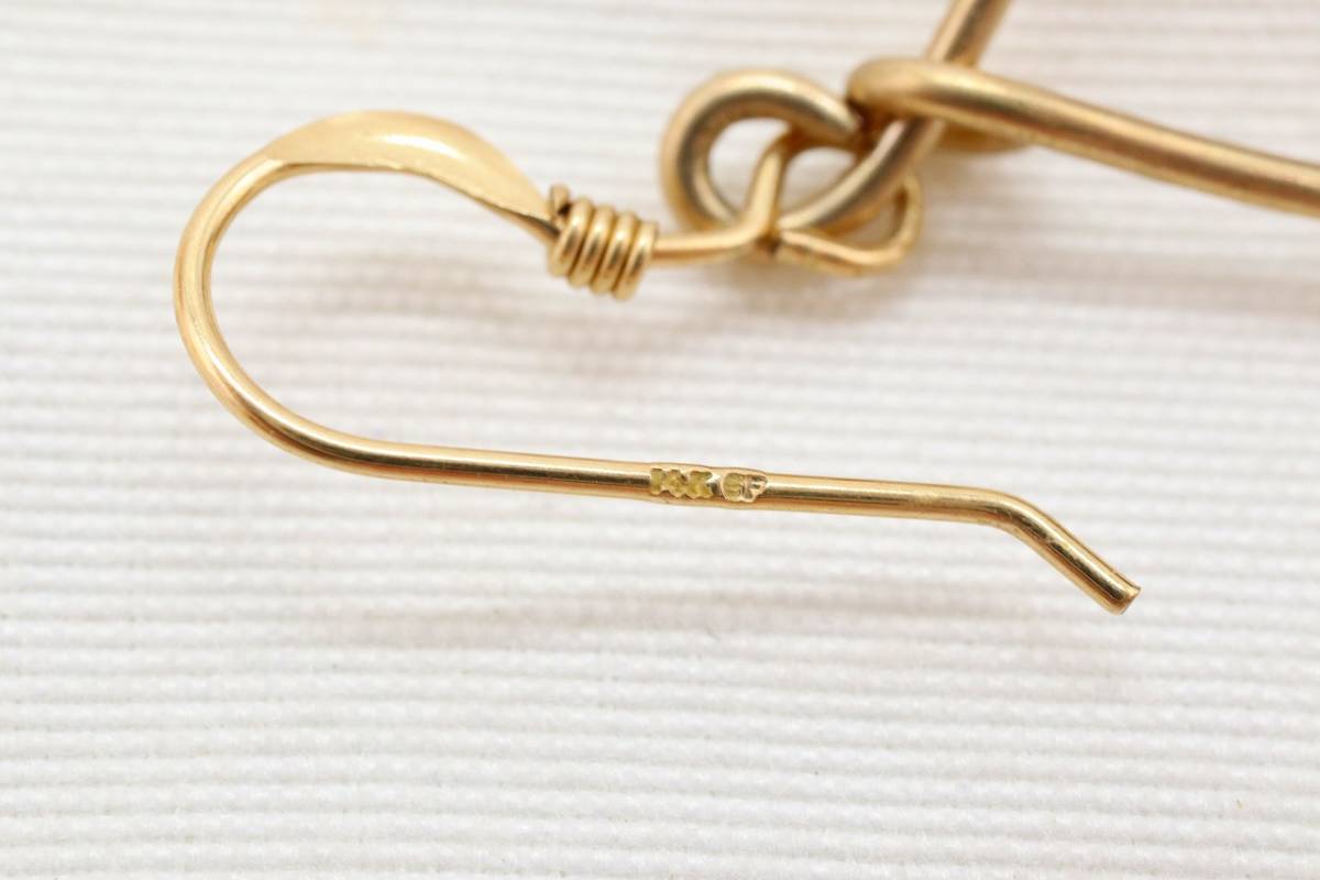 【X146】14KGF タイガーアイ ブラックスピネル 変形 フープ ピアス フック ティアドロップ 揺れる 天然石【送料全国一律198円】