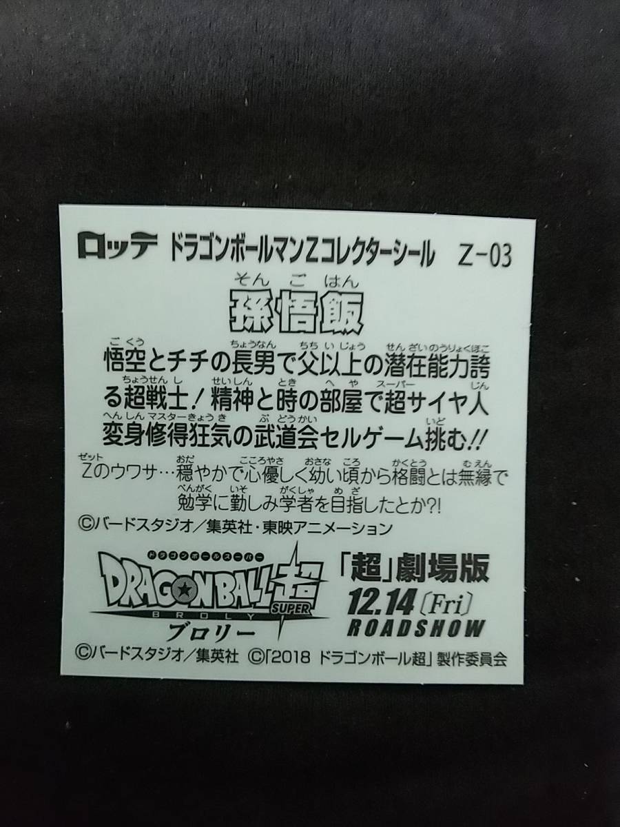 ドラゴンボールマンZ  Z-03 孫悟飯   です。状態は写真で判断して下さい。詳しく知りたい方は質問でお願いします。旧ビックリマン、ひかり伝、聖核伝、ビックリマン伝説を大量出品していますので、他もご覧下さい。発送は普通郵便(110円~)のみになります。ノークレームノーリターンでお願いします。