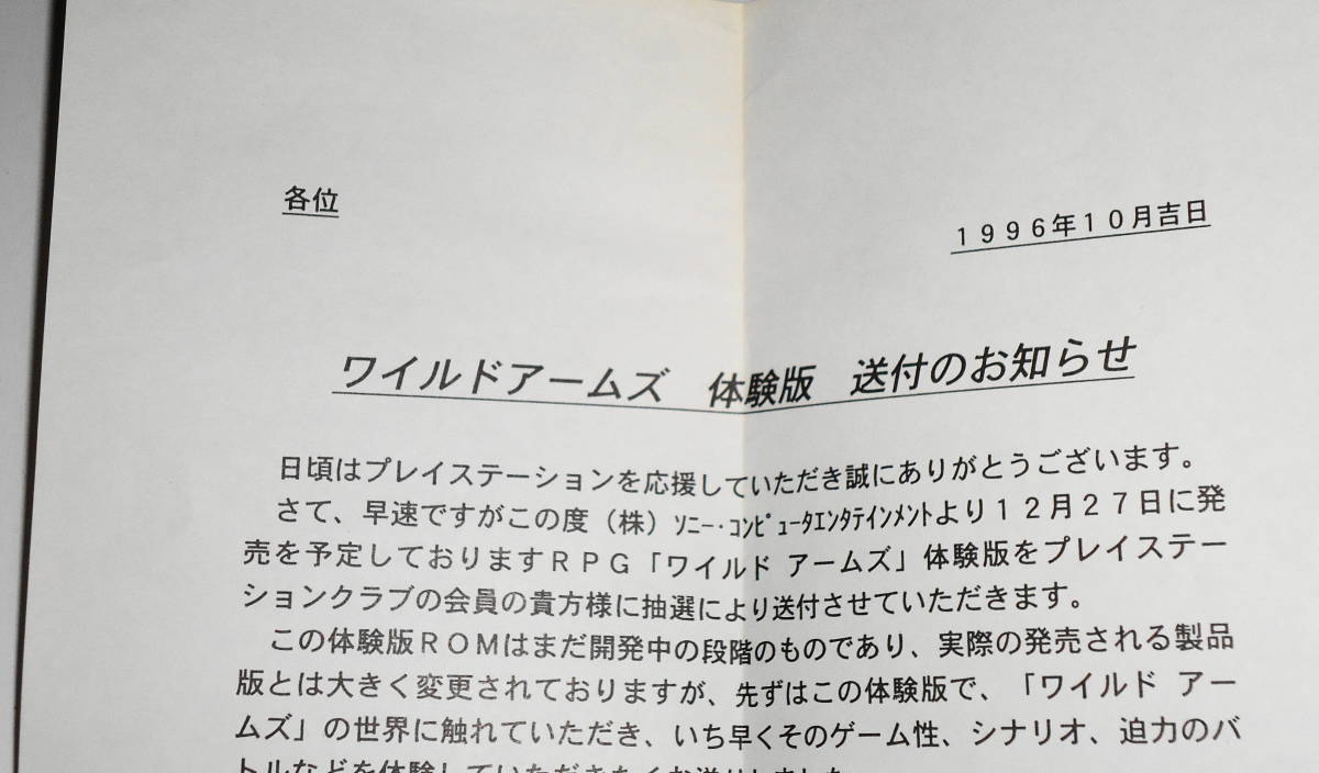 送料無料 【 PS ワイルドアームズ 体験版 】 WILDARMS 非売品 ★レア?条件付「体験版送付のお知らせ」あり