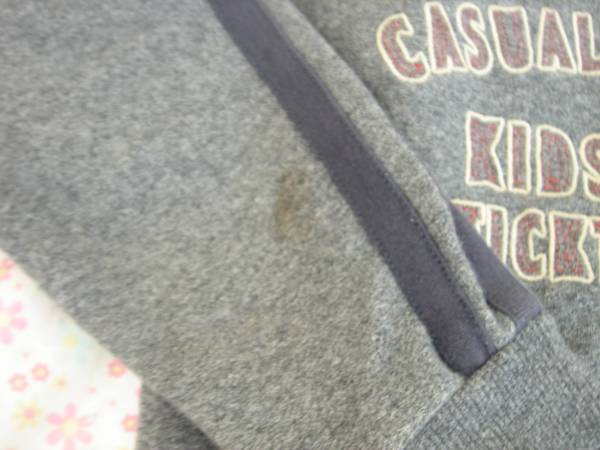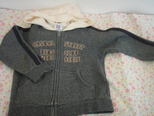 ☆フード付 フルジップ パーカー  グレー ライン付 110cm