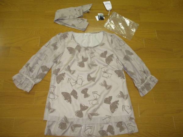 インゲボルグ フロッキーリボンシフォンブラウス 9号 ベージュ 新品タグ付き