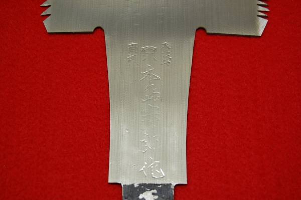 商品説明ご覧いただきありがとうございます。 和鋸の最大手であった木島製鋸所の大極上秘伝特殊焼入木島宗一郎作両刃鋸300mm尺1寸です。 サイズは、全長620mm*刃長300mm 刃の最大巾125mm 最小巾100mm(多少の誤差はご了承ください) 新品、まったくの未使用品。倉庫に箱に入って在庫してあった物です。そのため汚れサビも無く、包装用のビニール製のカバーまで極美の状態です。 なんだ木島かとマニアの方はいわれるかもしれませんが、和鋸全盛期の最大手のメーカーを無視するわけにはいきません。(あまりにも、沢山の銘を造り過ぎたきらいがありますが。) 宗八郎は知っているが、宗一郎は、あまり聞いたことが無いといわれるかもしれませんが、当時、木島会(有力登録販売店で構成)の会員店にのみでしか、販売できなかった(宗八よりも)プレミアムな鋸です。 当時のカタログにも掲載されていませんが、木島会パンフには、 「 伝統と歴史を持つ木島鋸の特級品として、純日本鋸古来の秘伝えを結集し、和鋸の最高峰としてその切れ味、耐久力と実用本位に徹した鋸。」と紹介されています。 柄は付いておりません。 よいのこぎりをお探しのかたは、この機会にぜひお求めください。 支払方法Yahoo!かんたん決済 発送方法ゆうパック(80サイズ兵庫県より)を予定しています。 他の商品と一緒に送ることもできます。 こちらをクリックしてご覧ください。 コメント画像の色については、なるべく実物に近くなるように写しているつもりですが、多少の違いがあるときもありますので、気になる方は、入札前に御質問ください。 日曜祝日は、基本的にメイルでの対応も発送もお休みさせていただいています。(急ぎの場合は出来る限り対応させていただきます。) 入札にはノーリターン・ノークレーム、落札後6日以内に決済可能な方のみご入札願います。 j21 |