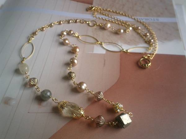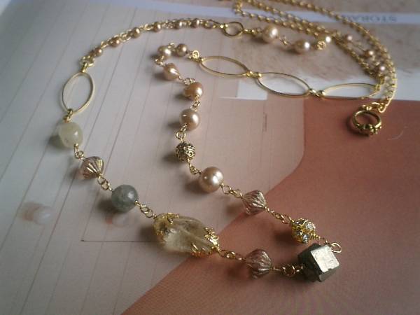 エゴイスト・少女・・シリーズです♪パール・セレクト・・モーヴピンクの淡水パールにラブラドライトやシトリン、ルチルクォーツやパイライトなど神秘的な石やチェコビーズを合わせてロマンチックなネックレスです♪淡水パールは4ミリから9ミリ位までのポテトやバロックや芥子などデザイン違いです♪ラブラドライトは10ミリのランダムカット、ルチルクォーツ、パイライトはラフカット、シトリンは25ミリ位のマーキスです♪長さは全長93センチ位で調節自由です♪2連にされても素敵です♪お揃いのブレスレットも出品しています♪シンプルで飽きのこないいつまでも着けられるデザインを考えて作りました!ハンドメイドをご理解頂いてノークレーム、ノーリターンでお願いします
