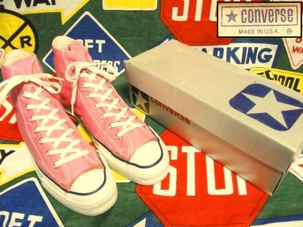 ☆希少なデットストック☆Made in USA製アメリカ製ビンテージCONVERSEコンバースオールスターピンク80s80年代銀箱サイドステッチ当て布青枠